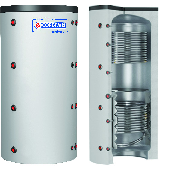 Nádoba určená na výrobu a skladovanie teplej vody do vykurovania. Prispieva k zlepšeniu flexibility systému pri použití zdrojov tepla s typickým prerušovaným zdrojom energie (napr. kotle a kachle na biomasu, tepelné čerpadlá či solárne systémy). Telo akumulačnej nádoby je vyrobené z ocele povrchovo ošetrenej len z vonkajšej strany. Z vnútornej strany nie je nijaké povrchové ošetrenie, keďže nádoba slúži na akumuláciu vykurovacej vody v uzavretom systéme bez prísunu vzduchu. Nádoba sa dodáva s polyuretánovou izoláciou s vysokou schopnosťou tepelnej izolácie. Tepelná výmena sa zabezpečuje 2 pevnými zabudovanými výmenníkmi.