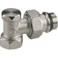 Regulačné a uzatváratežné radiátorové róbenie rohové, chromované s vnútorným závitom na pripojenie na ocežové rúrky.