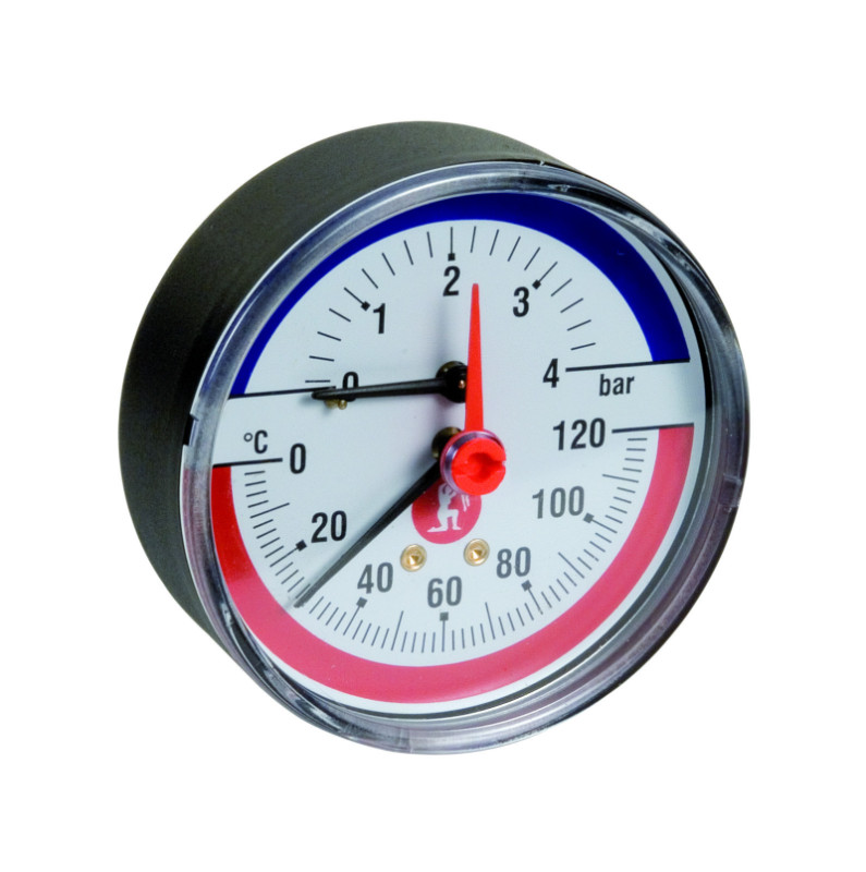 Termomanometer na meranie teploty - škála merania 20÷120 °C a tlaku v systéme - škála merania 0÷4 bar alebo 0÷6 bar.