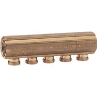 Mosadzná rozdeľovacia tyč s vonkajšímii závitmi. Pripojenie na rúrky prostredníctvom adaptérov R179 alebo R178.
