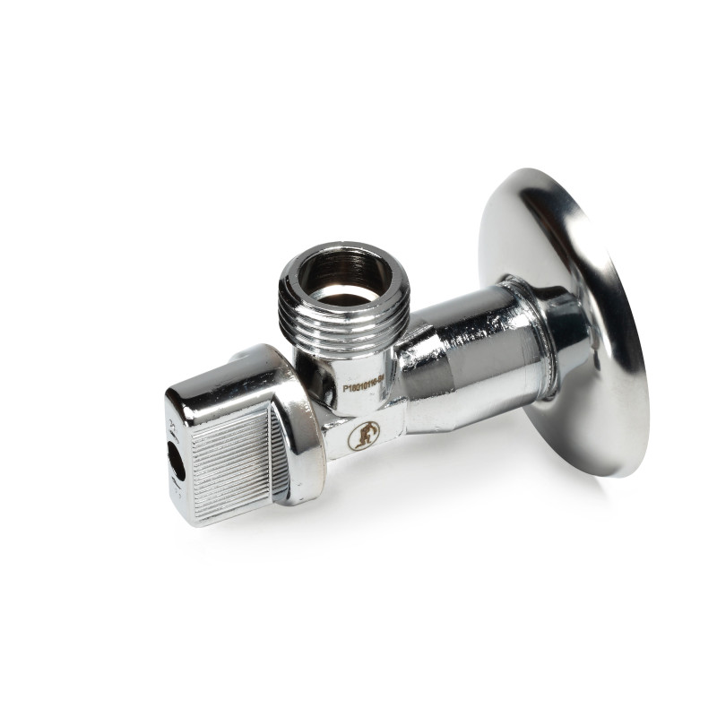 R613 Ventil pod umývadlom s vonkajším a vonkajším závitom. Povrchová úprava z chrómovanej mosadze. Plastová rukoväť (použitie vody).
