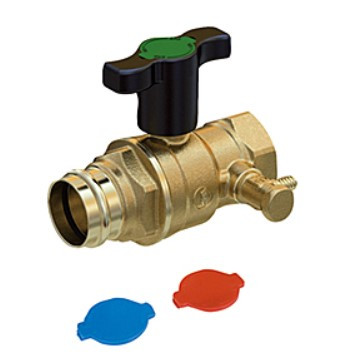 Plnoprietokový gužový ventil s lisovacím nátrubkom s čiernym O-krúkom pre rozvody vody (sanita, kúrenie, chladenie), jedným