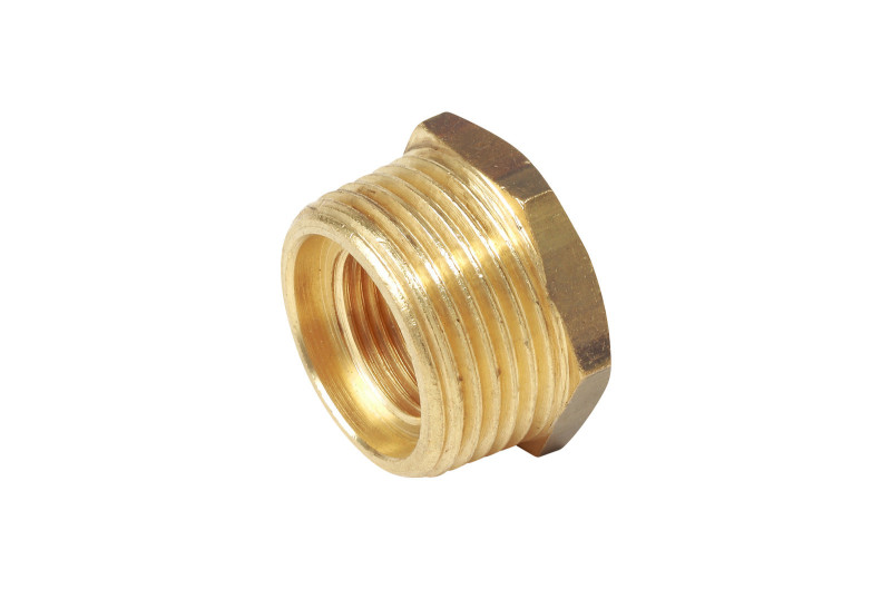 Redukcia s vútorným a vonkajším závitom vyrobená z mosadze.