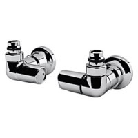 Set rohového termostatického ventilu a regulačného šróbenia, ktorého súčasťou sú aj dve krytky na rúrku a dve rozety.